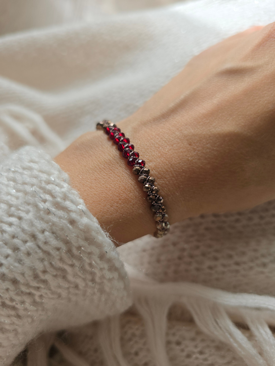 Bransoletka Cherrynut, to propozycja dla kobiet, które cenią rękodzieło, dopracowane detale i biżuterię subtelnie dopełniającą styl, zarówno w codziennych stylizacjach, jak i bardziej eleganckich zestawieniach. Jej fasetowane, szklane kryształki pięknie odbijają światło, nadając całości delikatnego blasku i lekkości.