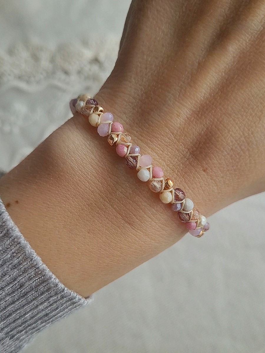 Wykonana z koralików Toho, czeskich koralików oraz drobnych kryształków, pięknie odbija światło i delikatnie mieni się przy każdym ruchu dłoni. To model subtelniejszy, który doskonale sprawdzi się zarówno noszony solo, jak i w zestawie z innymi bransoletkami z kolekcji. Idealny na co dzień, ale również jako drobny, symboliczny prezent.